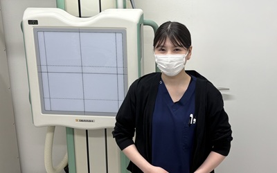 胸部X線検査、胃部X線検査、マンモグラフィ検査、CT検査、MRI検査、骨密度検査をローテーションしながら担当しています。